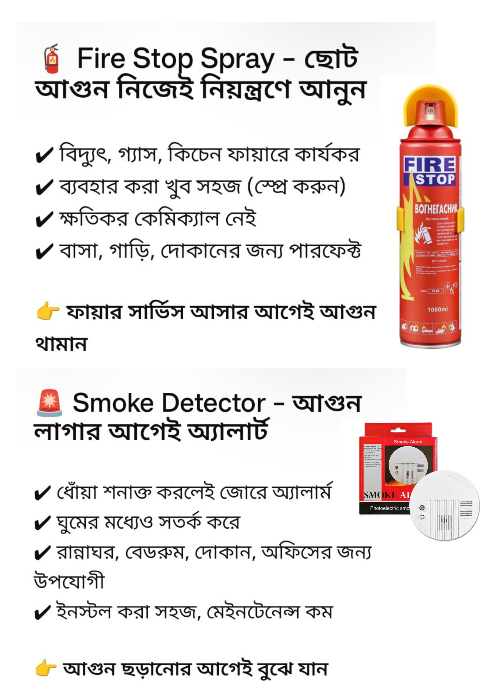 ফায়ার স্টপ স্প্রে এবং স্মোক এলার্ম Smoke Detector + Fire Stop Spray Combo কম্বো